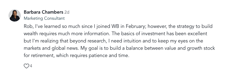 As an annual member, you become a WB Insider with full access to exclusive financial content, guides, events, discussions, and tools designed to support your wealth-building journey throughout the entire year.