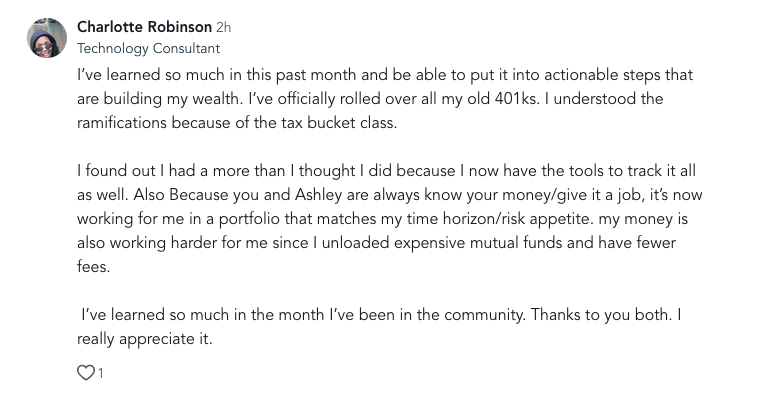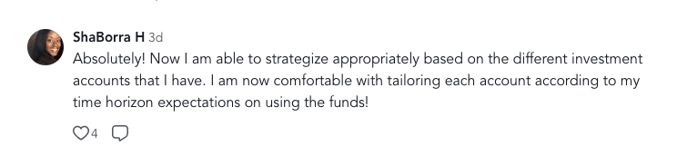 You’re learning how to think, plan, and invest like someone who is building long-term wealth.